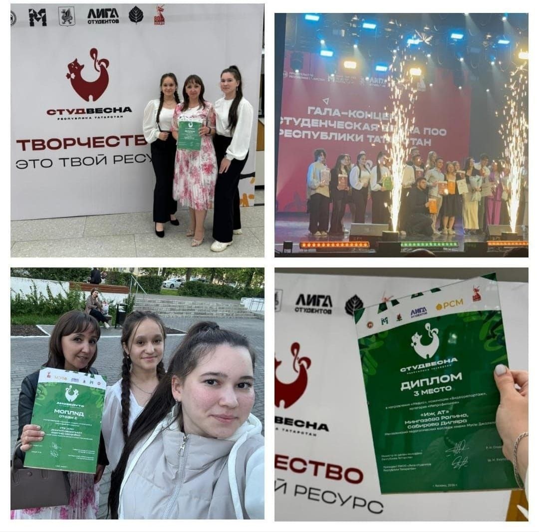 🎉 Студентки Мензелинского педколледжа взяли "бронзу" на "Студенческой весне-2025"! 🎉 20 мая в Казани состоялся грандиозный гала-концерт республиканского фестиваля "Студенческая весна РТ-2025", где наши талантливые девушки доказали – они лучшие! 🌟 Диляра Сабирова и Ралина Мингазова, студентки 2 курса, под руководством педагога Гульназ Талиповой покорили жюри в номинации "Медиа" и заслуженно заняли 3 место! Этот успех – результат: ✔️ Креативного подхода ✔️ Профессионализма и упорства Гордимся нашими звёздочками и желаем новых творческих вершин! #МензелинскийПедколледж