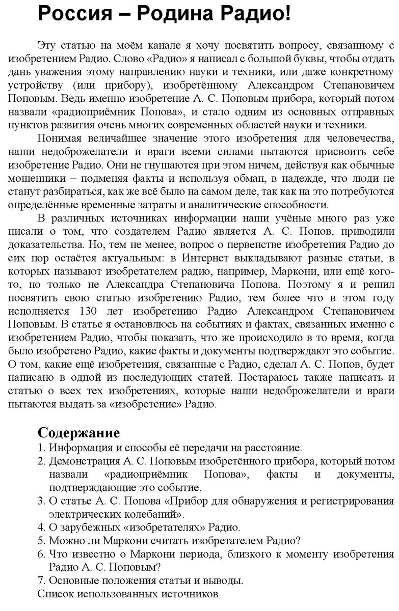 При воспроизведении приведенной информации не забудьте указать ссылку на канал: Медведев, И.И. Россия – Родина Радио!. – Текст : электронный // Канал «О радиоэлектронике и не только». – URL: https://dzen.ru/suite/fefba25c-fd51-4810-9fd0-c4e28d209d22. – Дата публикации: 22 мая 2025. или на журнал, где 20 мая 2025 года опубликована эта статья с сокращениями, чтобы уложиться в отведенный объём по правилам журнала: Медведев, И.И. Родина радио – Россия! // Вестник связи. – 2025. – № 5. – С. 40–45.