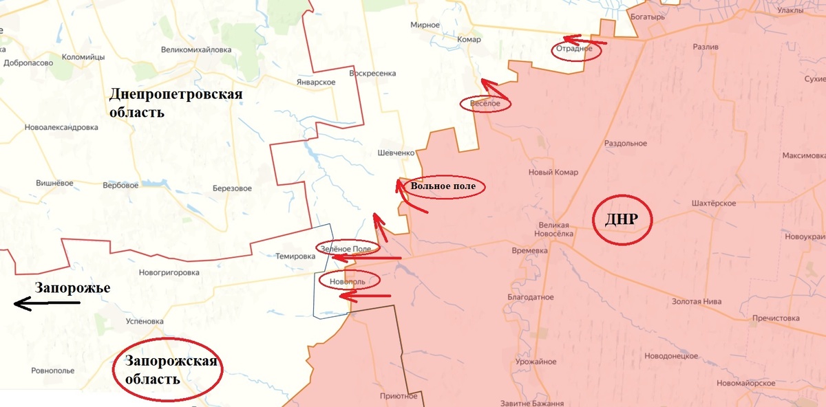 Армия России продолжает выполнять задачи спецоперации на Украине. Об итогах продвижения за последние дни пишут военные Телеграм-каналы. Бои у трёх регионов За последние трое суток на стыке Запорожской, Днепропетровской областей и ДНР ВС РФ провели несколько успешных штурмов и продвинулись в районе сел Новополь, Зелёное поле, Весёлое и Отрадное. Кроме того, под контроль ВС РФ перешёл посёлок Вольное Поле. «Южно-Донецкое направление. Бойцы 60-ой бригады освободили н.п. Вольное Поле. Одновременно с этим ВСУ пытается контратаковать с севера на село Бурлацкое», - написал военкор Анатолий Радов накануне вечером, 21 мая. Бойцы 36-ой бригады, 430-го полка, а также спецназ штурмуют Отрадное, где есть продвижение. Отмечаются позиционные бои вблизи Запорожской границы. «Зафиксировано продвижение ВС РФ вдоль восточного берега реки Мокрые Ялы с расширением зоны контроля около 1 км по фронту у Великой Новосёлки», - пишет Телеграм-канал «Сливочный каприз». На Запорожском фронте СВО ВСУ тормозят наши