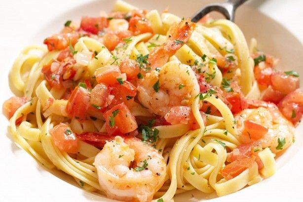 Рецепт пасты с креветками и помидорами: Приятного аппетита!