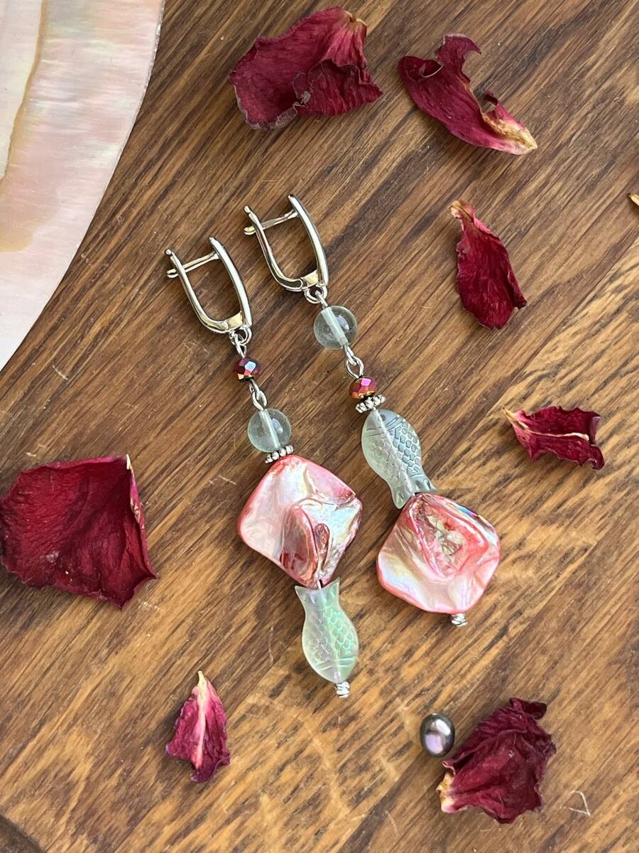 Помните как в рекламе: «да кто это купит, это вообще никому не нужно»… Но не делать такие серьги, я не могу. Делаю, из любви к искусству! Позвольте мне хоть иногда выкладывать здесь что то такое этакое, необычное, боховитое)) Завтра будут очень миленькие серьги, а сегодня пусть будут эти сложные с перламутром, флюоритом и стеклом . 🐠🐠