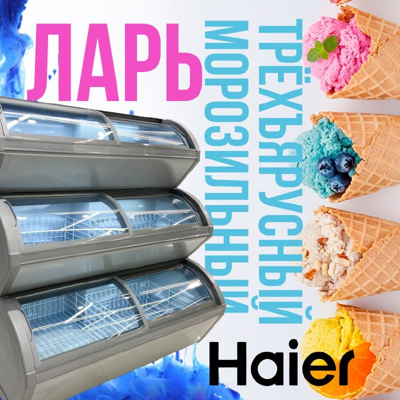 Супер выкладка любимого летнего десерта - ТРЕХЪЯРУСНЫЙ МОРОЗИЛЬНЫЙ ЛАРЬ HFR-HM400 от HAIER! 🔠 🔠🔠🔠🔠🔠🔠🔠 в компании ❄️РОСХОЛОД! 📌 Каждый ярус может работать самостоятельно и имеет электронный контроллер! 👍Отличная возможность в зависимости от сезона делать Ларь ДВУХъярусным или ТРЕХъярусным! 👍А также хранить разные виды продукции! 🌡 Температура в камере до -20 С 🔖Двойные стеклянные дверцы для экономии электроэнергии; 🔖Наличие колес для удобного перемещения; 🔖Напряжение 220-240 В; Добавь себе настроения HAIER! 🙂 В выполнении заказа Вам помогут: 🖤 Сайт Росхолод 🖤Бот телеграм (расскажет вам о наличии) Звонок персональному менеджеру / по номеру телефона 8-800-200-31-30