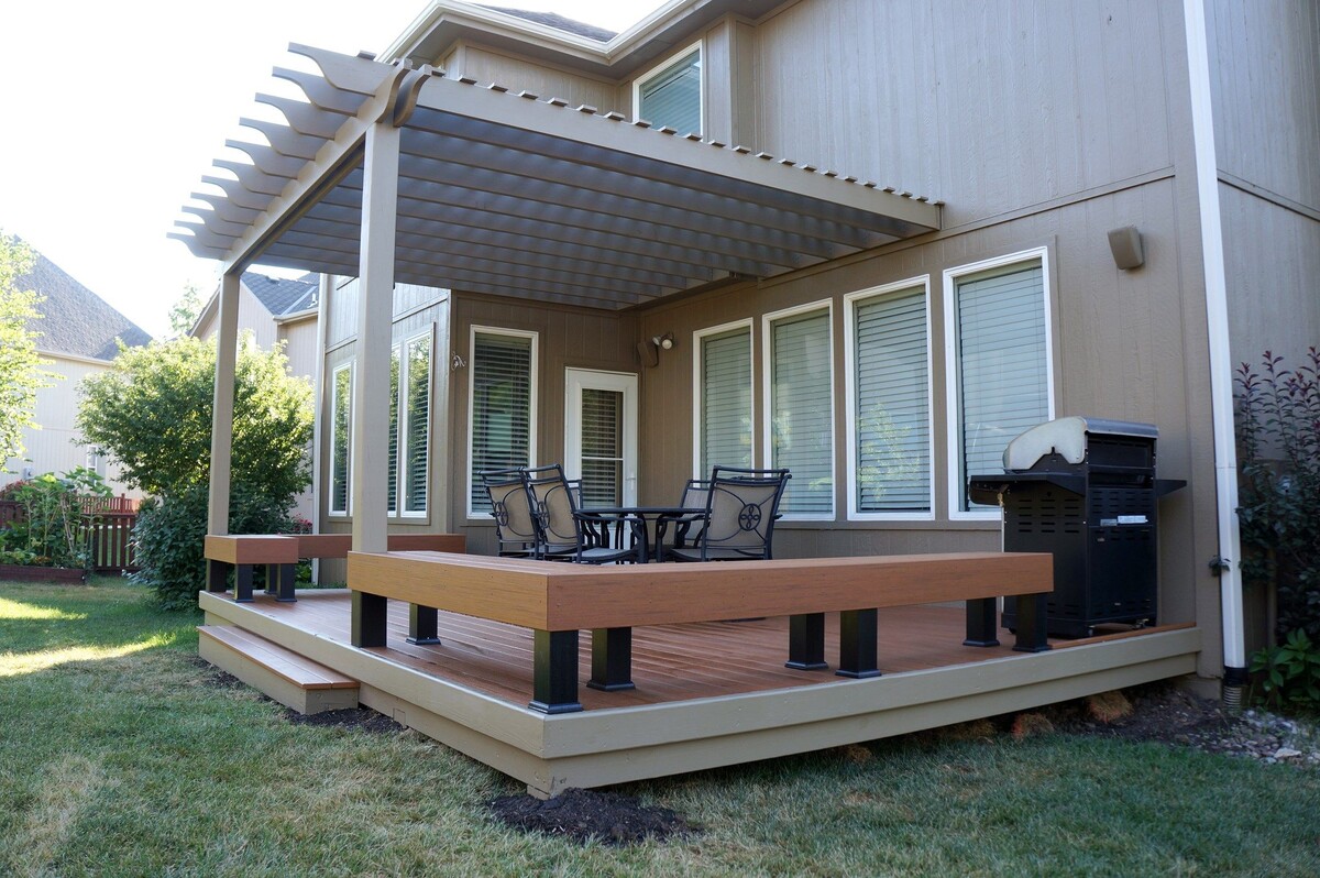 При проектировании террасы важно заранее определить её тип — открытая или закрытая. Это не просто архитектурное решение, а выбор образа жизни, комфорта и даже долговечности будущей конструкции. Оба варианта имеют свои особенности, и понимание их заранее позволит сделать террасу действительно удобной и функциональной. Открытая терраса — это площадка с настилом, которая может иметь навес, но остаётся открытой со всех сторон. Она буквально растворяется в окружающем ландшафте, позволяя быть ближе к природе. Такие террасы особенно хороши в летний сезон: лёгкий ветер, солнечные лучи, аромат сада. Вечерами здесь приятно ужинать, проводить время с семьёй, устраивать встречи с друзьями. Преимущество такой конструкции — в ощущении простора и естественности. Чтобы такая терраса радовала долгие годы, необходимо особое внимание уделить материалам. Мы рекомендуем использовать террасную доску, устойчивую к влаге, ультрафиолету и перепадам температур. Особенно себя хорошо показала террасная доска из М