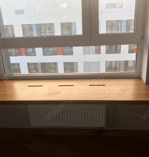 Что важно учесть при создании широких дубовых поверхностей Иногда подоконник — это больше, чем просто доска под окном. Это полноценная зона отдыха, рабочее место или уютный уголок, где хочется задержаться подольше. Когда заказчик обратился к нам, задача звучала: сделать подоконники. Но на деле это оказалось вызовом. Мы создавали не просто элементы отделки, а мебель, способную выдерживать вес человека, оставаться стабильной в условиях городской влажности. Цельноламельный дуб был выбран неслучайно — он прочный, с красивой текстурой. Но при таких габаритах (800 мм в ширину!) даже дуб требует усиления. Мы применили поперечные вклейки на обратной стороне, чтобы добиться нужной жёсткости. А перфорация, задуманная для вентиляции от радиаторов, заставила пересмотреть привычную технологию фрезеровки — снизили скорость на 30%, чтобы избежать растрескивания. #дубовыйподоконник #valemiwood #ремонтмосква #экодизайн #интерьеридеи #деревяннаямебель
