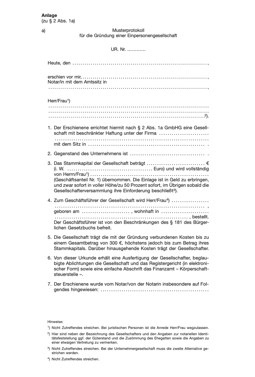 Первый шаг, который предпринимает предприниматель при открытии UG, — это обращение к нотариусу. Либо, при необходимости, к адвокату. Открытие возможно двумя способами: либо через стандартный протокол (Musterprotokoll), то есть типовой образец, либо через индивидуальный устав, составленный под конкретные нужды бизнеса.