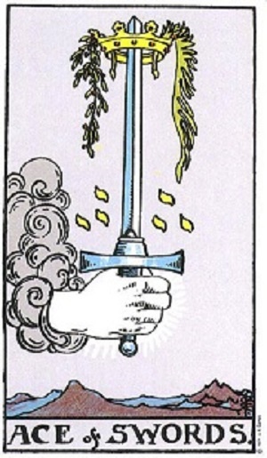 Туз Мечей указывает на ясность ума, новые идеи, суждения, планирование и принятие ответственных решений.