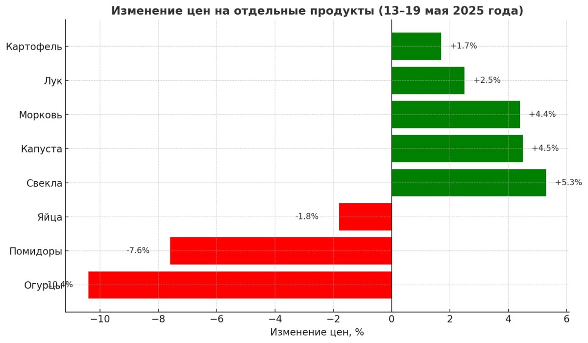 ⤴️ Несмотря на сохраняющееся внешнее давление и волатильность глобальных рынков, потребительская инфляция в мае демонстрирует признаки стабилизации. 🔼За неделю с 13 по 19 мая индекс потребительских цен составил +0,07%, а с начала месяца +0,15%, что заметно ниже аналогичных показателей мая 2024 года. Это результат комплексных мер, направленных на стабилизацию рынка. Особенно важно отметить удешевление плодоовощной продукции (по ряду позиций снижение достигло 5-10%). Это не просто сезонный эффект, а подтверждение эффективности усилий по развитию тепличных хозяйств, логистики и поддержке аграриев. ⤴️Цены на основные социально значимые товары в целом держатся в допустимых пределах. Сдержанный рост отмечен в сегментах мясо птицы (+1,3%), свекла (+5,3%), капуста (+4,5%). При этом подешевели подсолнечное масло, яйца, молочная продукция, макароны. Это важно для малообеспеченных слоёв населения, которые более чувствительны к колебаниям на полке. 📱 ГУТЕНЁВ | Подписаться