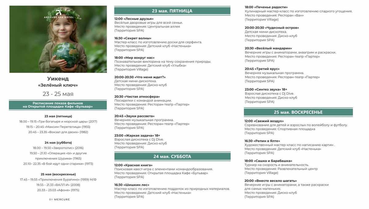 Программа анимации на уикенд "Зеленый ключ" в период с 23 по 25 мая 🌳