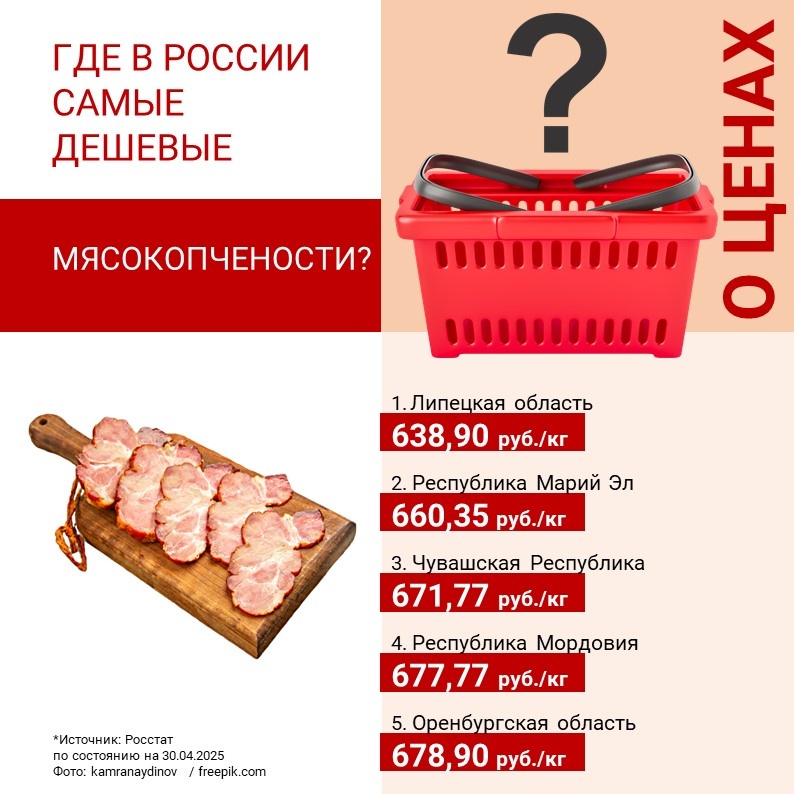 Где в России самое дешевое копченое мясо и изделия из мяса птицы?