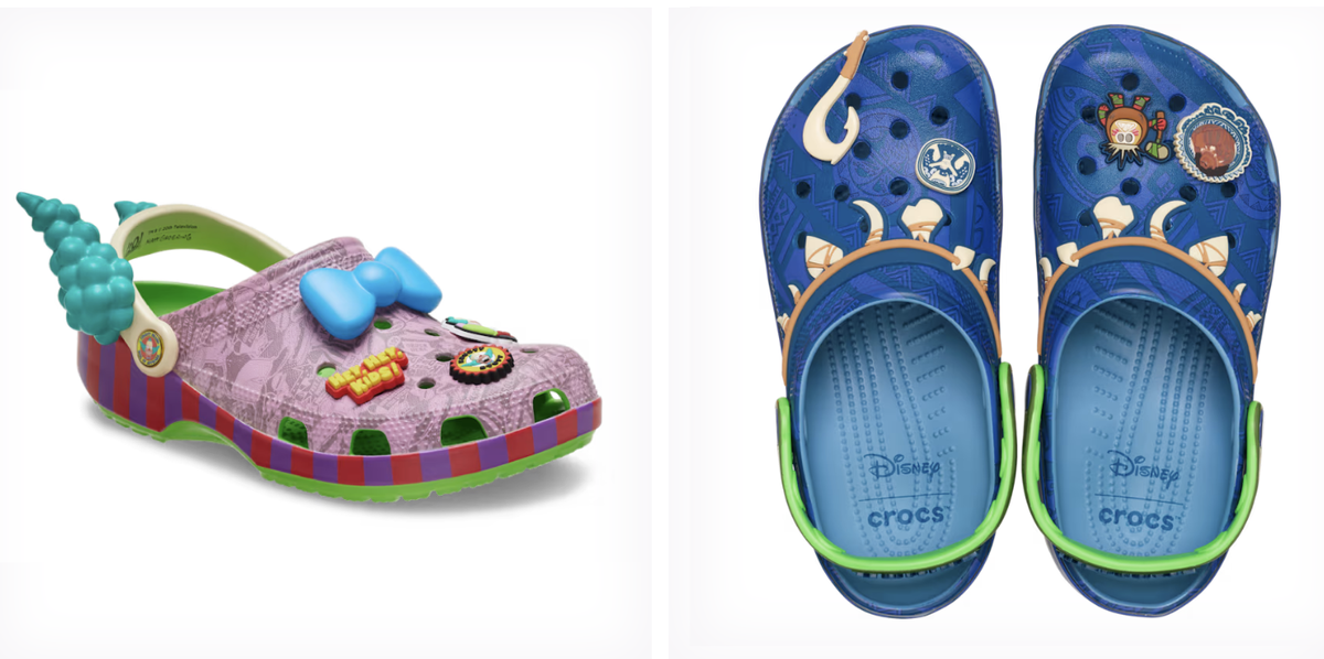 Crocs в конце апреля и мае 2025 года однозначно удивил и порадовал — как любителей уличной моды, так и фанатов мультфильмов Disney. Среди новинок — модели с Моаной, Алисой в стране чудес, а также яркие джибитсы и сабо по мотивам "Симпсонов". Мы выбрали самое интересное — те коллаборации, мимо которых точно не получится пройти. Бренд объединился с культовыми именами и персонажами поп-культуры, представив необычные и желаемые релизы. Рассказываем, что уже в продаже и что скоро появится! Релиз состоялся 6 мая 2025 Ослепительная коллаборация с Swarovski привнесла в мир Crocs гламур и роскошь. Сабо украшены кристаллами, гравировкой и сверкающими Jibbitz™-брелоками, созданными в ограниченном тираже. Коллекция доступна эксклюзивно через приложение Crocs. Пара этих сабо — не просто обувь, а настоящее произведение искусства. Релиз состоялся 19 мая 2025 Молния Маккуин и Тоу Мэтр теперь на ваших ногах! Эти сабо выполнены в красных и коричневых цветах, вдохновлённых героями «Тачек», и снабжены Ji