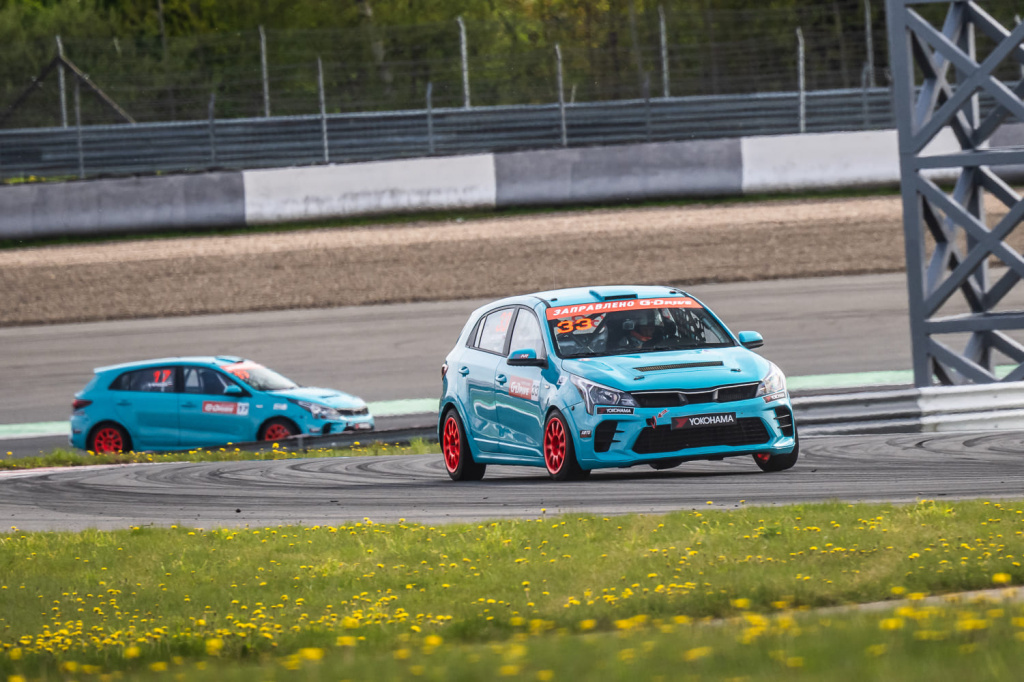 Таким образом, на трек Moscow Raceway выехали сразу четыре бирюзовых Kia, и одна из них, с номером 12 и Николаем Карамышевым за рулем, сразу оказалась на поул-позиции. Дударев (номер 33) квалифицировался девятым, а Черевань (17), явно еще не успевший «прикатать» новый для себя болид, тем не менее, квалифицировался седьмым. Наконец, Димитрадзе (82) показал пятый результат в своем классе, где заезды проводятся вместе с Туринг-Лайтом, но чуть позади, — кстати, зачем это нужно, нам в очередной раз наглядно продемонстрировали в конце заезда.