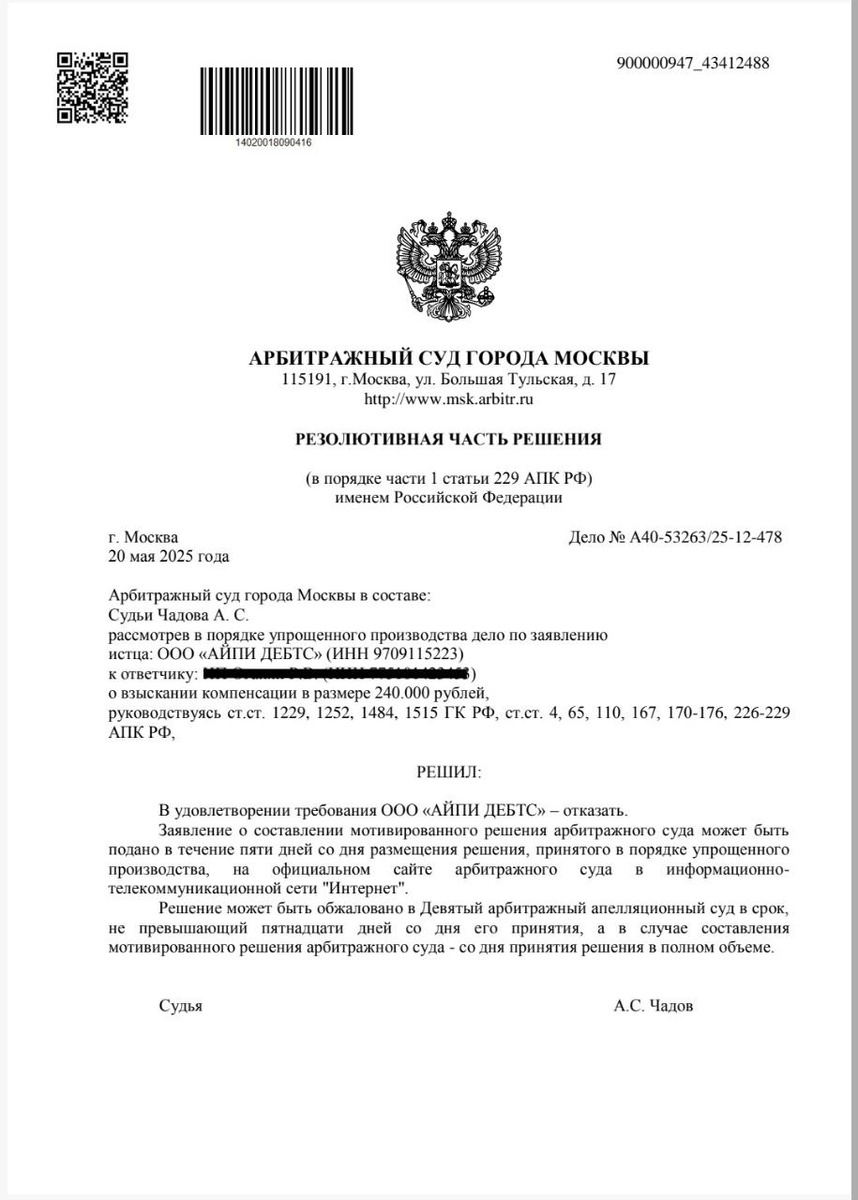 Вы тоже получили иск или претензию за бренды Under Armour Ink / Андер Армок Инк,? Средний размер требований - 200 000 руб. 🤔 Текущая особенность данных дел: в суд обращается не сам правообладатель - Under Armour Ink., а его правопреемник по договору уступки - ООО "АЙПИ ДЕБТС". ⚠️Чем заканчиваются дела по товарным знакам Under Armour Ink? При правильной защите вполне реально выйти в ноль! 🙂 Дела наших доверителей - хороший пример. В частности, Дело № A40-53263-2025 / Арбитражный суд г. Москвы ВАЖНО! Вы можете задать свой вопрос и ознакомиться с нашей практикой в группе ВКонтакте https://vk.com/business_lawyer А также в моем личном канале в Телеграм: https://t.me/lawyer_Ishutin Всего доброго! ______________________
