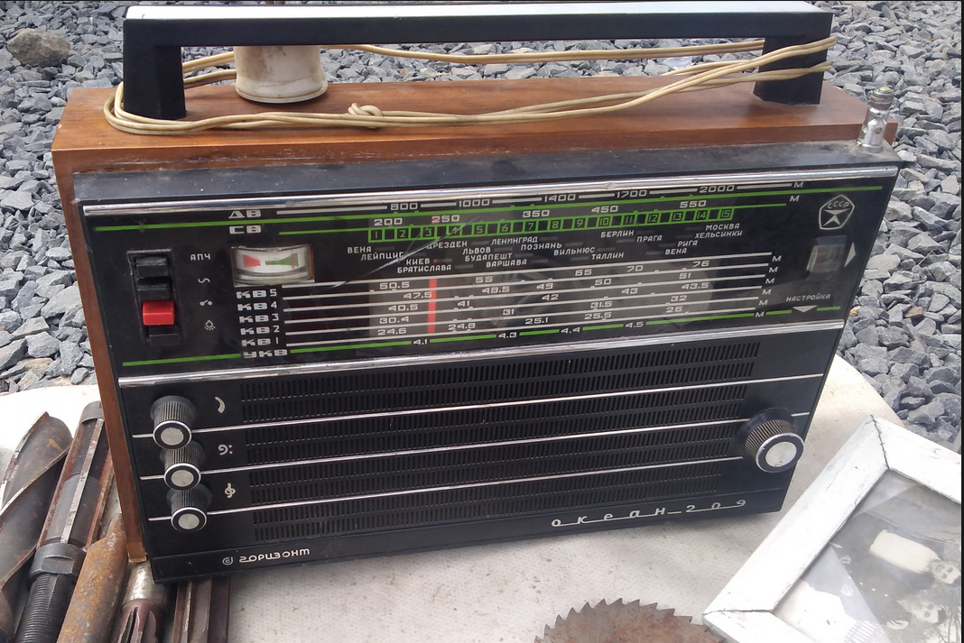 Добрый день дорогие друзья Я продолжаю посещать барахолки. Погода этом месяце уже очень тёплая. Солнышко светит очень ярко, и это отрицательно сказывается на качестве фотографий, поэтому не судите строго. Хочу сразу предупредить, что некоторые выставленные на барахолке экземпляры товаров, продаются не сразу, а таскаются на барахолку месяцами, а то и годами, поэтому их фото и описание могут в моих обзорах иногда повторяться. И как всегда мы начнем наш обзор с советских радиоприемников Первым у нас будет радиоприемник Океан-209, все ручки на месте, есть шнур питания, но обломана антенна. Продавец просил за него 800 руб. Следующим у нас будет отреставрированный радиоприемник VEF-557 с современным FM диапазоном Вид сзади За него хотели 12000 руб На моем канале про такой радиоприемник есть очень интересная статья: «Очень редкий и интересный радиоприемник "VЕF-М-471" в современном исполнении за 99тыс.руб.», рекомендую прочитать. Радиоприемник "Верас РП-225" с буржуйскими КВ диапазона
