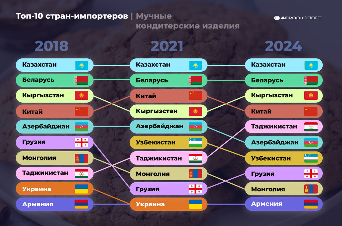 Но какие страны лидируют по закупкам российских мучных кондитерских изделий? Куда экспорт растет быстрее всего, а какие рынки теряют позиции? Разбираемся в динамике импорта за последние годы.