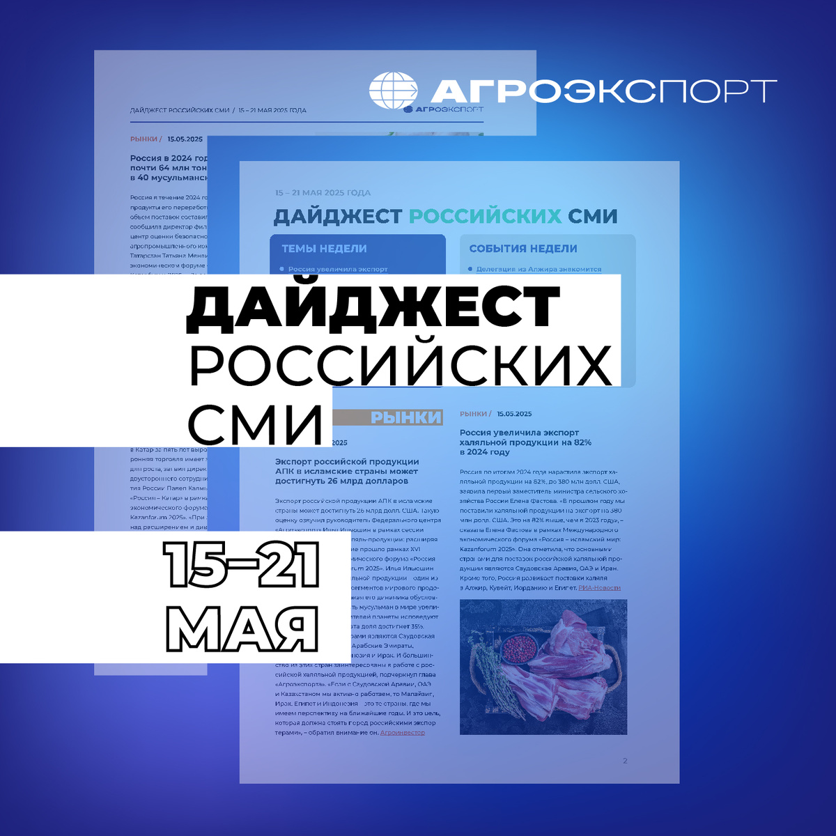 💱 Экспорт российской продукции АПК в исламские страны может достигнуть 26 млрд долларов;