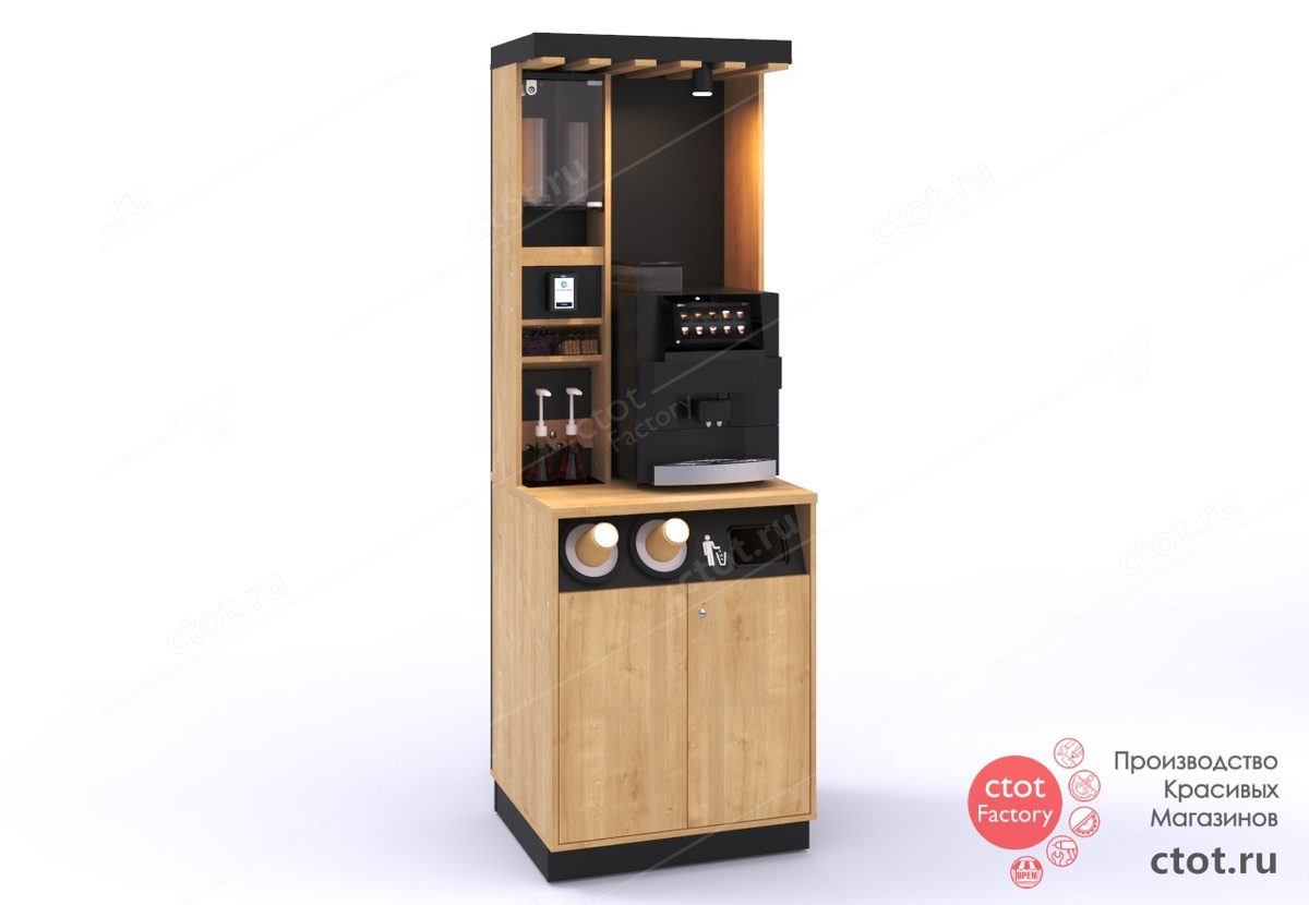 Друзья, представляем вам кофейный корнер самообслуживания ProCorner-Eco-22 - стильный, функциональный и экологичный модуль, разработанный фабрикой Ctot Factory специально под кофемашину JETTINO JL22. ProCorner-Eco-22 - это гармоничное сочетание лаконичного дизайна и продуманной эргономики. Корнер занимает совсем немного места, но вмещает всё необходимое для полноценного кофейного сервиса: диспенсер для крышек, место под терминал оплаты, место под кофемашину, универсальный органайзер для салфеток, мешалок, органайзер для сиропов, диспенсер стаканов, подсветку спотами, отверстие для мусора, места для товарного запаса и многое другое, о чем вы можете подробнее узнать из инфографики или на сайте фабрики. Кофе-модуль изготовлен из качественных материалов: ЛДСП EGGER в цветах - натуральный дуб Гамильтон и чёрный графит, что делает модуль уместным в любой интерьерной концепции.