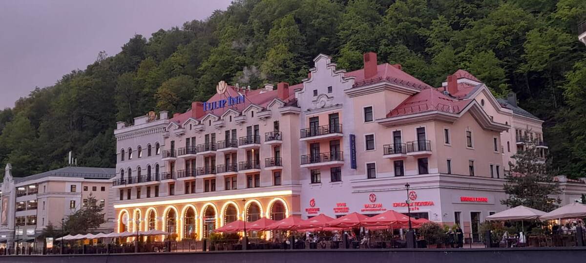 поднимающей туристов до смотровой площадки на высоте 2320 метров, до Музея археологии, Этнографического музея "Моя Россия", да и остановка автобуса, приезжающего из Сочи, совсем недалеко. Вот и в это раз решили остановиться в приглянувшемся нам месте и выбрали отель по-соседству - Tulip Inn Rosa Khutor 3*,