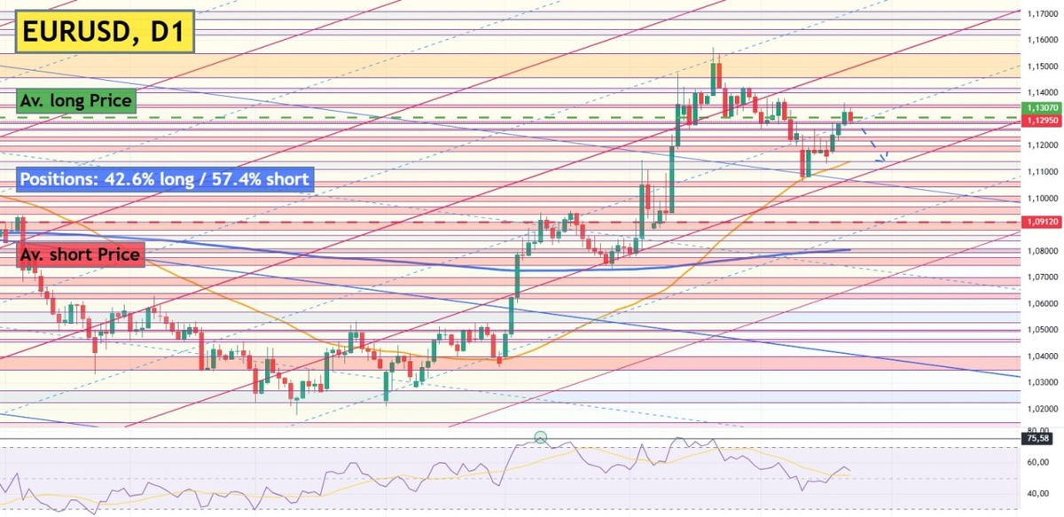 🇪🇺🇺🇸EURUSD, как и описано в логике выше, начал попытку коррекции. Перевес продавцов при этом стал ниже 60%. Если тенденция продолжит развиваться, то можно будет присоединяться к нисходящей тенденции. С технической точки зрения видится хорошим момент открытия сделок на продажу при закреплении цены ниже отметки 1.1260 с целями в диапазоне 1.1110 - 1.1140.