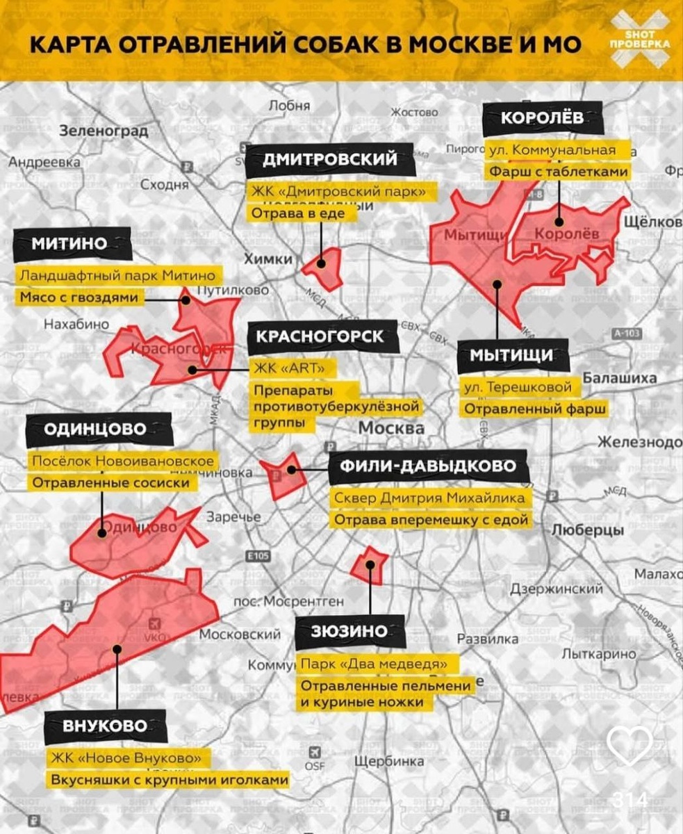 Друзья, следите особенно за своими питомцами, если выгуливаете их на территории мест, обозначенный на карте. Как видите, душегуба используют самые разные методы для истребления четвероногих. Поделитесь этой картой с друзьями и близкими.