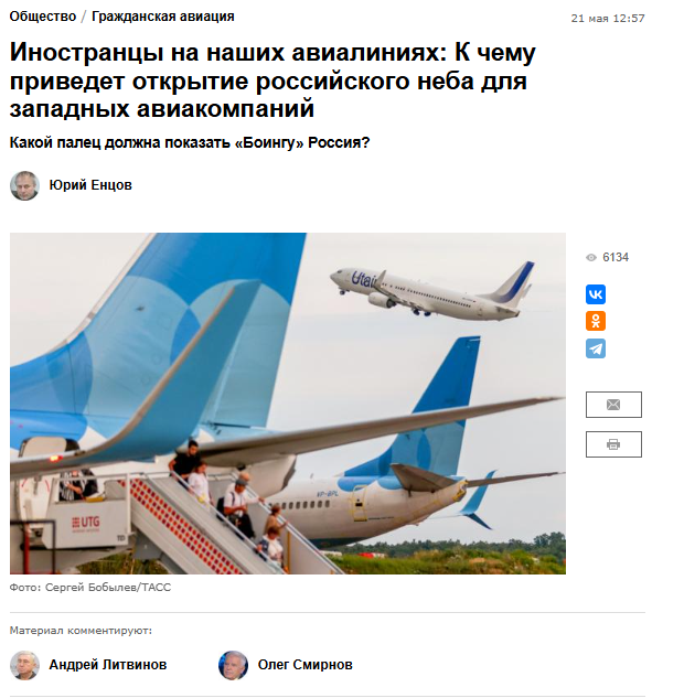 Член Общественного совета при Ространснадзоре Олег Смирнов об открытии российского неба для западных авиакомпаний. Свободная пресса,21.05.25