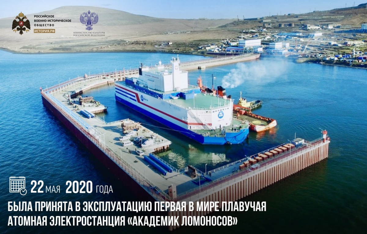 22 мая 2020 года была принята в эксплуатацию первая в мире плавучая атомная электростанция «Академик Ломоносов»