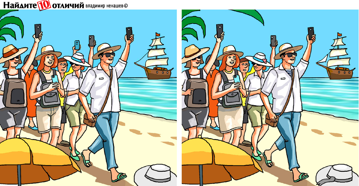 Всем привет! Разгадайте загадку в рисунке ниже. Лето, море и песок. Итак, на нашей картинке туристы получают впечатления от моря. А у нас ровно 2 минуты найти отличия! Ответ Психологические тесты на внимательность и память от Дзен-канала Ура жизни.