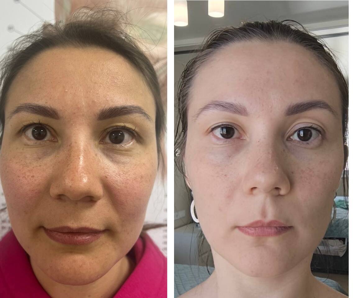 Провели курс PDRN 5 процедур, через 3 недели завершили Полимолочкой! В домашнем уходе крем Глутатион с Бетулином