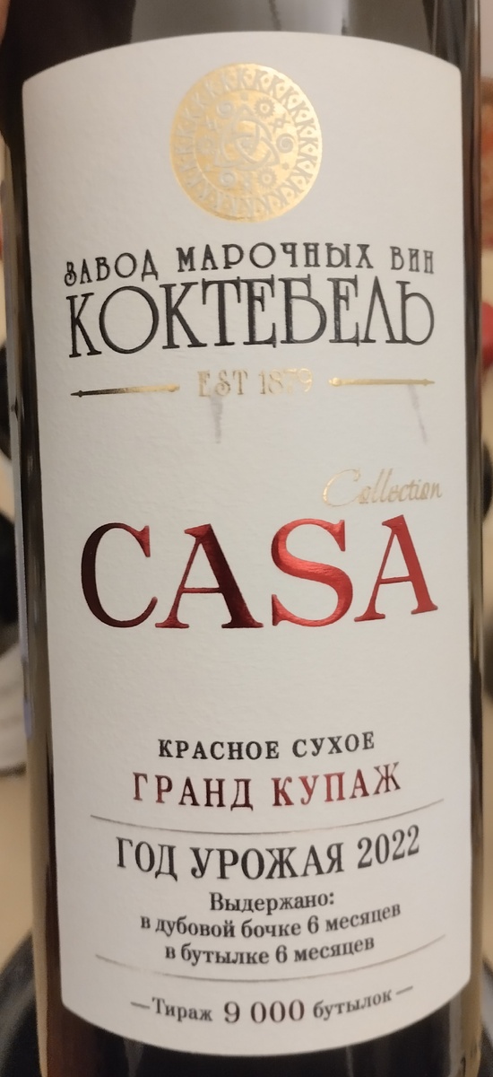 Коктебель всегда был известен своими креплеными винами, но ситуация такая в мире виноделия, "что в карете прошлого в далеко не уедешь", и спрос на крепленые вина падает, и на сцену выходят сухие вина. На винодельне пришла новая команда, которая не прекратила выпускать крепленые, которые у них на уровне, и начали делать сухие вина. И надо сказать, что то что продегустировал оказалось неплохо, а не тот треш, который был года три назад. И этикетки уровня газет 50-х годов прошлого века стали поинтереснее. Совсем другой уровень. На полке оно смотрится хорошо, заметно. А теперь про вино. Виноградник: Крым, Коктебель. Состав: Каберне Совиньон, Мерло, Бастардо, Рубиновый Магарача увяленный. Брожение в винификаторе Ganimede при температуре не выше 30 °C. Яблочно-молочное брожение. Выдержка в дубовой бочке с применением французского дуба в течении 6 мес. Выдержка в бутылке 6 месяцев. Цвет ярко-красный. В аромате желе из красной смородины, вишня, малина, клубника, ежевичное варенье, черешня,