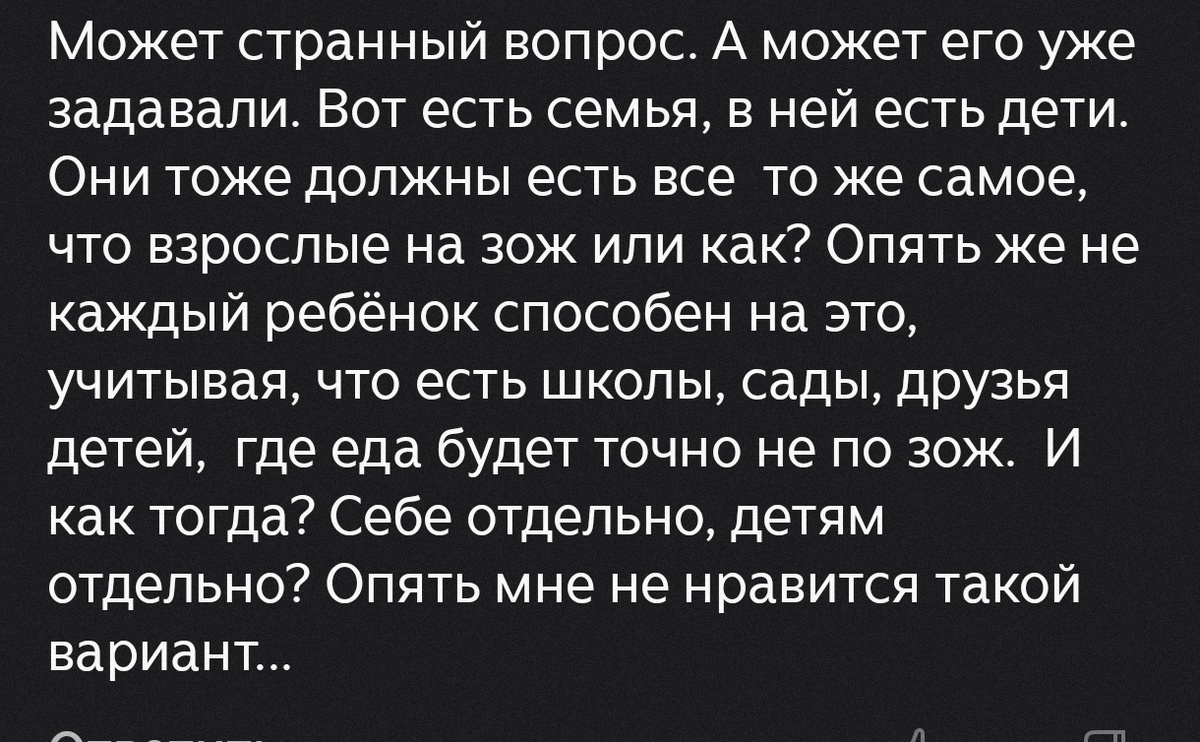 Поэтому когда меня спрашивают: "А что, детей тоже надо кормить зожно?"