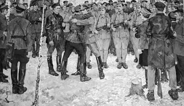 В марте 1943 года к партизанам, в числе прочих, ушел Виктор Рутткай. Ушел по идейным соображениям — его отец был коммунистом и воевал с фашистами еще в Испании в составе Интербригад.