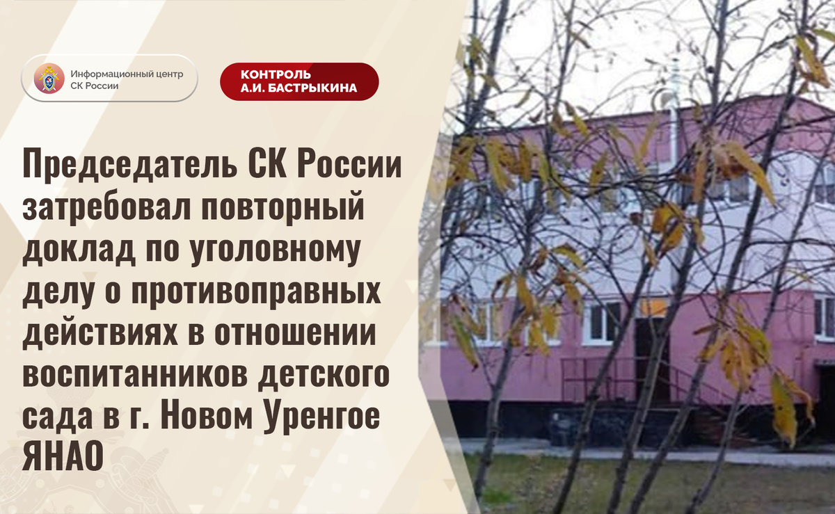 Председатель СК России затребовал повторный доклад по уголовному делу о противоправных действиях в отношении воспитанников детского сада в г. Новом Уренгое ЯНАО