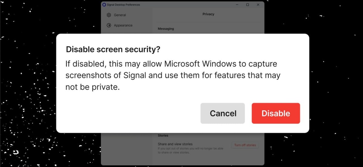 Как дипломатично отметил разработчик Signal: «Хотя Microsoft откликнулась на критику, Recall всё ещё ставит под угрозу приватность Signal. Так что пришлось добавить костыль — Microsoft не оставила нам выбора». Между тем на скрине предупреждение, которое получит пользователь, если попытается отключить блокировку. Прямолинейнее некуда. Signal заботится о твоей приватности, юзернейм. Позаботься о ней и ты — удали всю блоатварь из своей Windows и не пользуйся Recall! Попутно можно почитать публикацию о новой фиче в блоге Signal — разрабы от Recall сильно не в восторге. «Надеемся, в Microsoft в будущем будут думать головой, прежде чем пихать такое в свою ОС». Что уж здесь добавить.