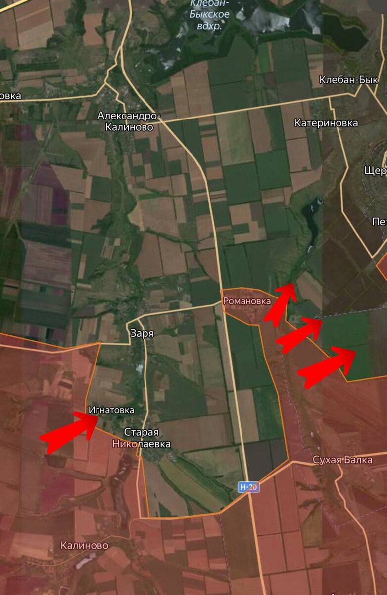 🪂 Константиновское направление. Южный фланг. От Зеленого Поля наши бойцы в ходе успешного натиска выбили врага и продвинулись в направлении Игнатовки на 3 км. Помимо этого севернее и восточнее Романовки заняли участок шириной более 3,4 км. Дневник Десантника 🇷🇺 Подписаться
