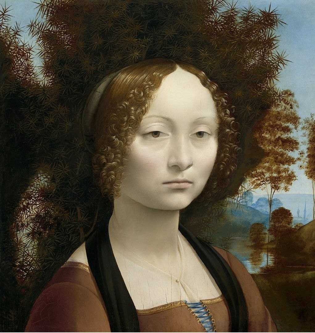 Леонардо да Винчи.Джиневра де Бенчи.1474,доска,масло 👩🎨На 1-м живописном портрете Леонардо изображена Джиневра д’Америго де Бенчи (ей около 17 лет), флорентийская поэтесса и интеллектуалка XV века 👉Нижняя часть картины срезана; по всей вероятности, там были нарисованы руки дамы 💥Невозможно сказать, нравится нам эта женщина или нет, симпатична она или неприятна. Она и привлекает, и отталкивает. В ней есть что-то невыразимо прекрасное и одновременно что-то лежащее по ту сторону добра и зла 🎭Взгляд кажется задумчивым и отстраненным, а лицо, хотя и не выражает ярких эмоций, наполнено внутренней жизнью и достоинством 🖌️ Леонардо мастерски передает свежесть кожи и едва уловимый румянец 🌿 Дама изображена на фоне можжевельника (по-итальянски "ginepro")и дивного маленького пейзажа в нижнем правом углу картины 🌟Портрет демонстрирует ранние эксперименты Леонардо со светотенью и техникой сфумато, которая позже достигнет расцвета в «Моне Лизе» Подпишись на MArt ✍️ узнаешь эксклюзив