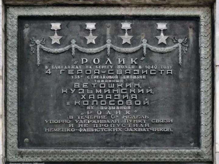 Приветствую всех подписчиков и читателей моего канала! В сегодняшней статье я хочу поделиться необычной историей, которая описана в воспоминаниях Ивана Васильевича Людникова. Фамилии четырех Героев этой истории начертаны на обелиске "Ролик", который установили после Сталинградской битвы у самого края обрыва правого берега Волги, в районе "Баррикад". Представьте себе овраг, с одной стороны выходящий к Волге, а с другой стороны переходящий в глубокую траншею, уходящую далеко в глубь тыла гитлеровцев. По самому краю оврага разместились огневые точки и немецкий блиндаж. Гитлеровцы наверху, а под ними в нишах крутых стен оврага засели четверо наших связистов, по два с каждой стороны. Это связисты промежуточной телефонной станции, их позывной "Ролик". Старшим был младший сержант Кузьминский, подчинялись ему три бойца - красноармейцы Ветошкин, Харазия и Колосовский. Когда гитлеровцы вклинились между нашими 138-й и 95-й дивизиями и вышли к берегу Волги, "Ролик" не получил приказ на отст