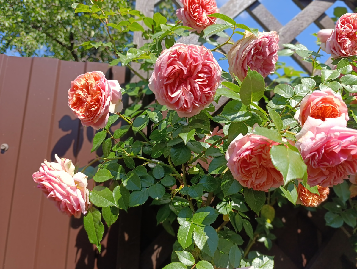 Доброго времени суток, дорогой мой читатель. Понижение температуры и постоянные дожди затормозили расцветание роз, однако, хоть по одному цветочку каждый кустик показал. Спешу поделиться с Вами и считайте это анонсом будущих рассказов об этих сортах роз. Но, сначала о тех, что расцвели. Продолжает цвести роза Чиппендейл, немного тяжелеют бутоны и клонятся вниз, но теперь я уже "ученая" и закрепила их к основе крепенько! Продолжает цвести Сумеречная зона, Отцветают быстро, но тут же появляются новые. Зацветает куст плетистой розы Пьер де Ронсар. Роза нежная, романтическая, очень любима садоводами за красоту и неприхотливость.