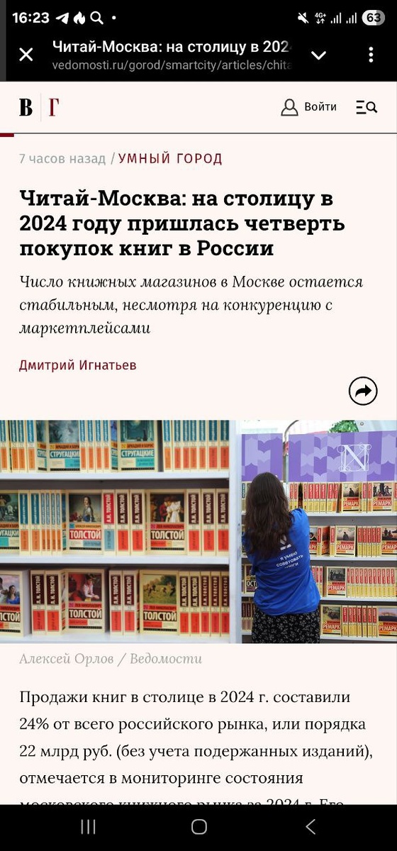 Прокомментировал газете Ведомости столичный книжный рынок. https://www.vedomosti.ru/gorod/smartcity/articles/chitai-moskva-na-stolitsu-v-2024-godu-prishlas-chetvert-pokupok-knig-v-rossii