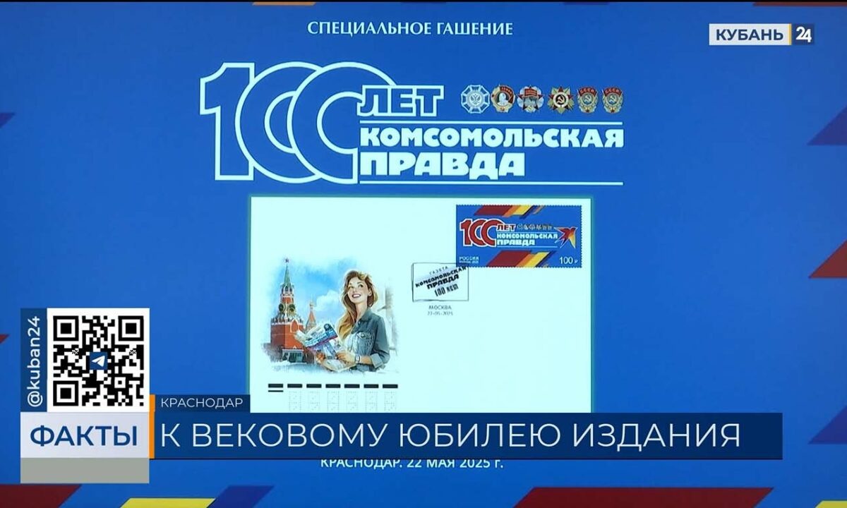 В Краснодаре состоялась церемония гашения почтовой марки, выпущенной к 100-летию «Комсомольской правды». Юбилейную марку номиналом 100 рублей издали тиражом 80 тыс. экземпляров, она поступит во все регионы страны. На Кубани планируется реализовать 800 экземпляров.