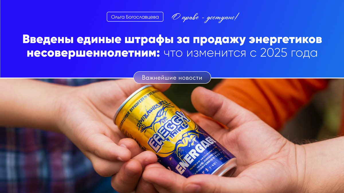 Госдума окончательно утвердила федеральный закон о единых штрафах за продажу безалкогольных тонизирующих напитков (включая энергетики) несовершеннолетним. Новые нормы устраняют правовой пробел - до сих пор ответственность устанавливалась только на региональном уровне и варьировалась в зависимости от субъекта РФ. Согласно принятым поправкам в КоАП РФ: Надзор за соблюдением запрета возложен на: До принятия федерального закона штрафы значительно отличались: Новые штрафы в 5-10 раз выше региональных аналогов. Под действие закона попадают: