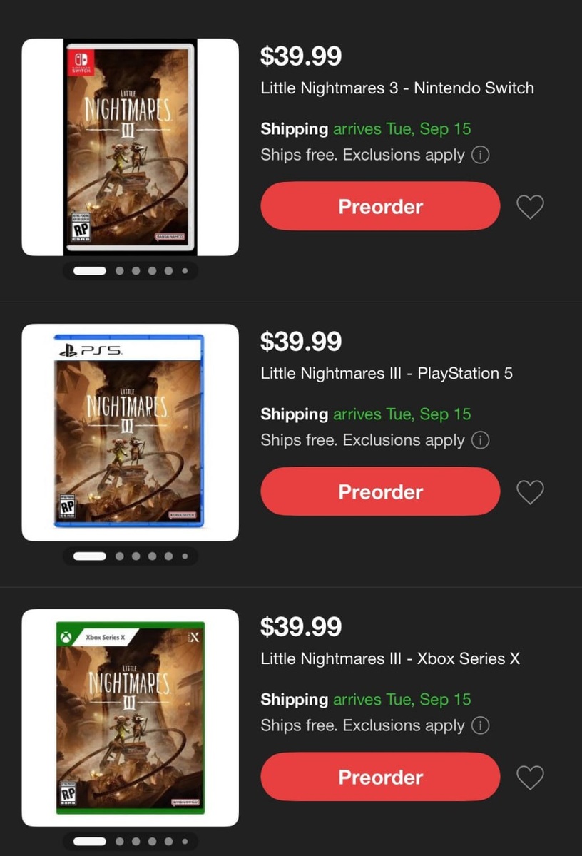 🧸 Релиз Little Nightmares III может состояться 15 сентября Такую дату выставили в некоторых магазинах с дисками. Обычно в подобных местах автоматически до официального объявления выставлена заглушка в виде последнего дня в году (31 декабря), но с недавнего времени число поменялось. Возможно, это связано с приближающимися новостями на Summer Game Fest, где могут официально объявить дату. Но также учитывайте, что это может оказаться обычная системная ошибка. ❗️UPD: дата подтверждена фейком 🗞 #OtherSMG | 🔗 Наши ссылки | ⭐️ Буст канала | 💬 Чат