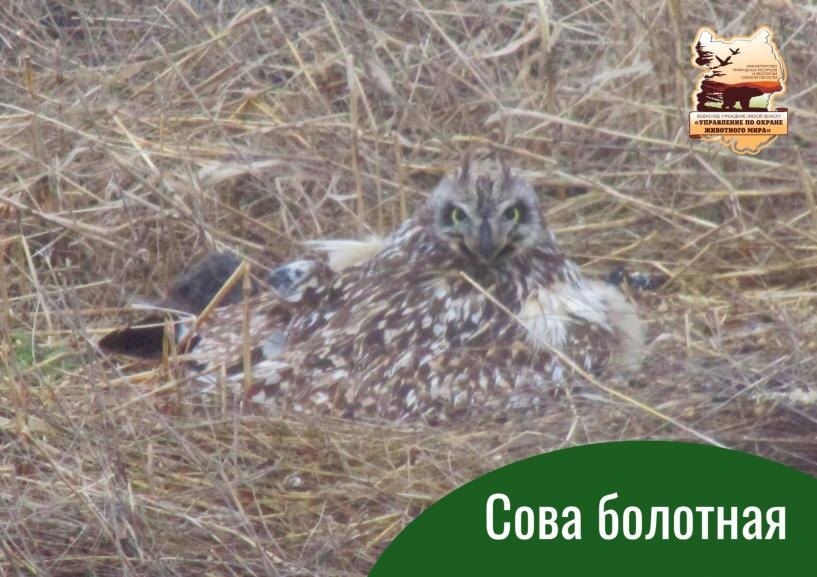 В Одесском районе Омской области увидели самку болотной совы с птенцами
