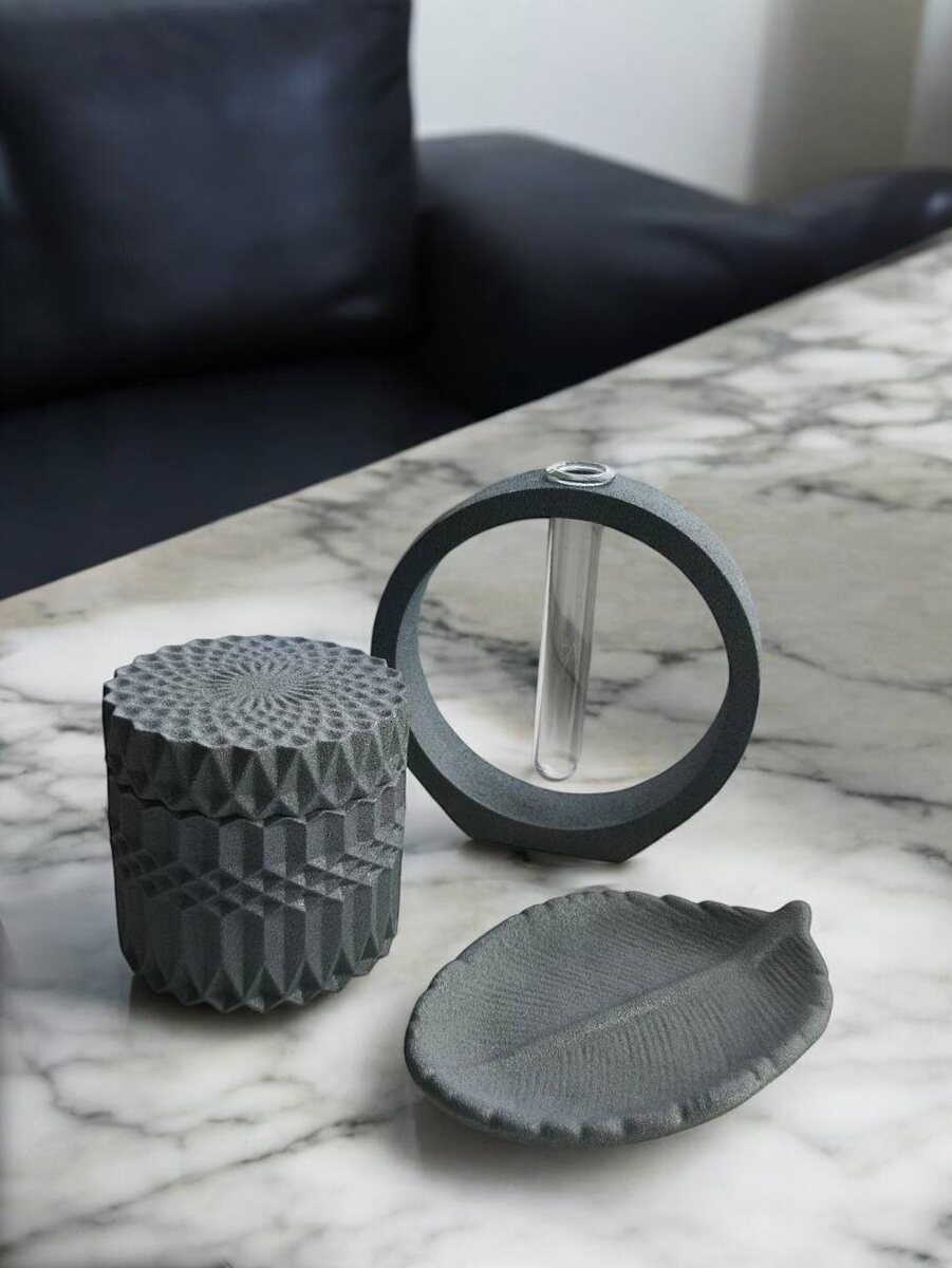 🌑 Три предмета для идеального порядка: как гипсовый набор меняет пространство В мире, где вещи постоянно теряются, а мелочи создают хаос, этот гипсовый трио становится тихим оазисом организованности. Почему эти предметы — больше чем аксессуары - Шкатулка — хранит не только украшения, но и моменты: → Кольцо, подаренное на годовщину → Серьги из путешествия → Записку, которую хочется перечитывать - Мини-ваза — философия «меньше значит больше»: ✓ Один тюльпан в понедельник ✓ Ветка черёмухи в мае ✓ Сухоцвет как напоминание о лете - Поднос — останавливает хаос: ▸ Часы и браслеты ▸ Парфюмерные пробники ▸ Карманные «сокровища»