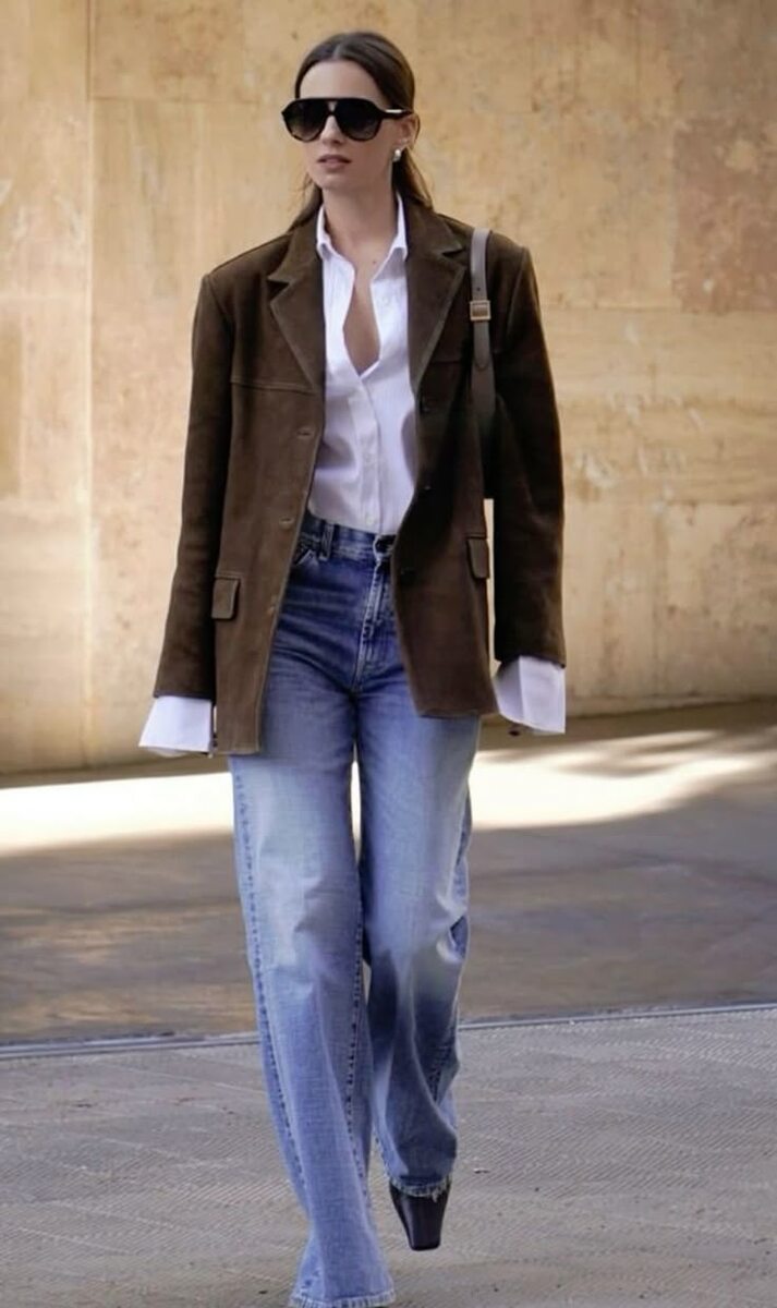 - Структура + мягкость: жакет + струящееся платье — беспроигрышно.