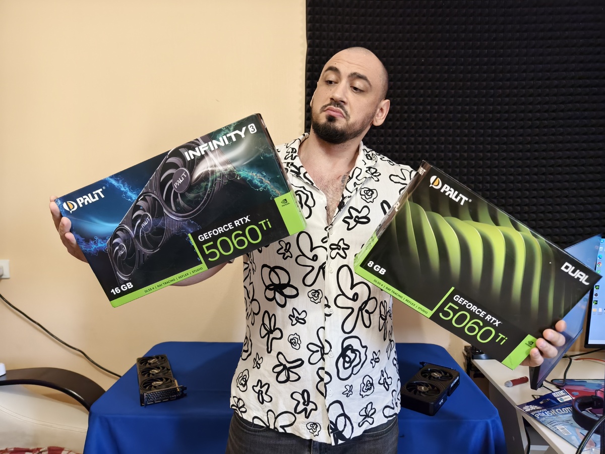 Начнем с RTX 5060 TI 8GB, напоминаю, исполнение PALIT DUAL.
