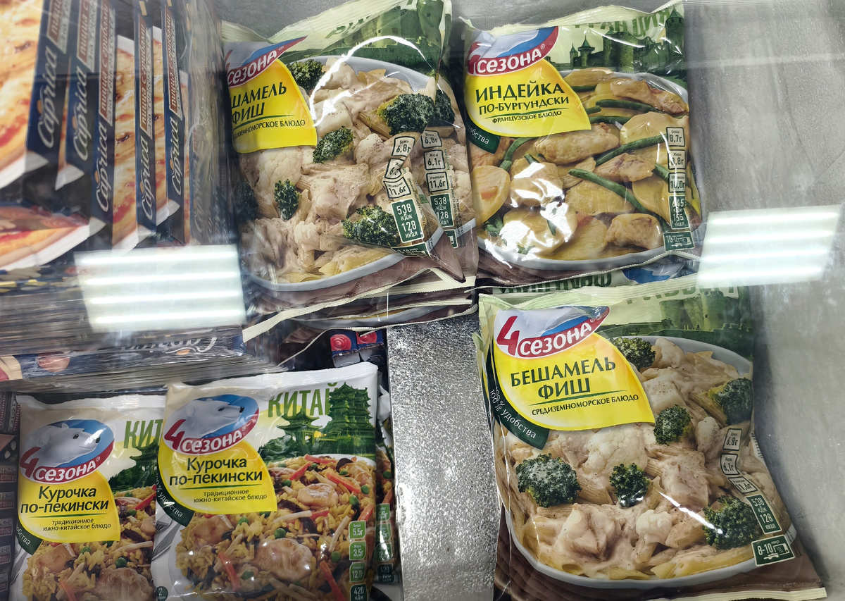 Вот ещё что было из интересного. Пельмени "Успенские" по 96р. за кг не рискнул взять. Сомнительно дёшево они стоят, хотя это и есть настоящая Светофоровская цена.