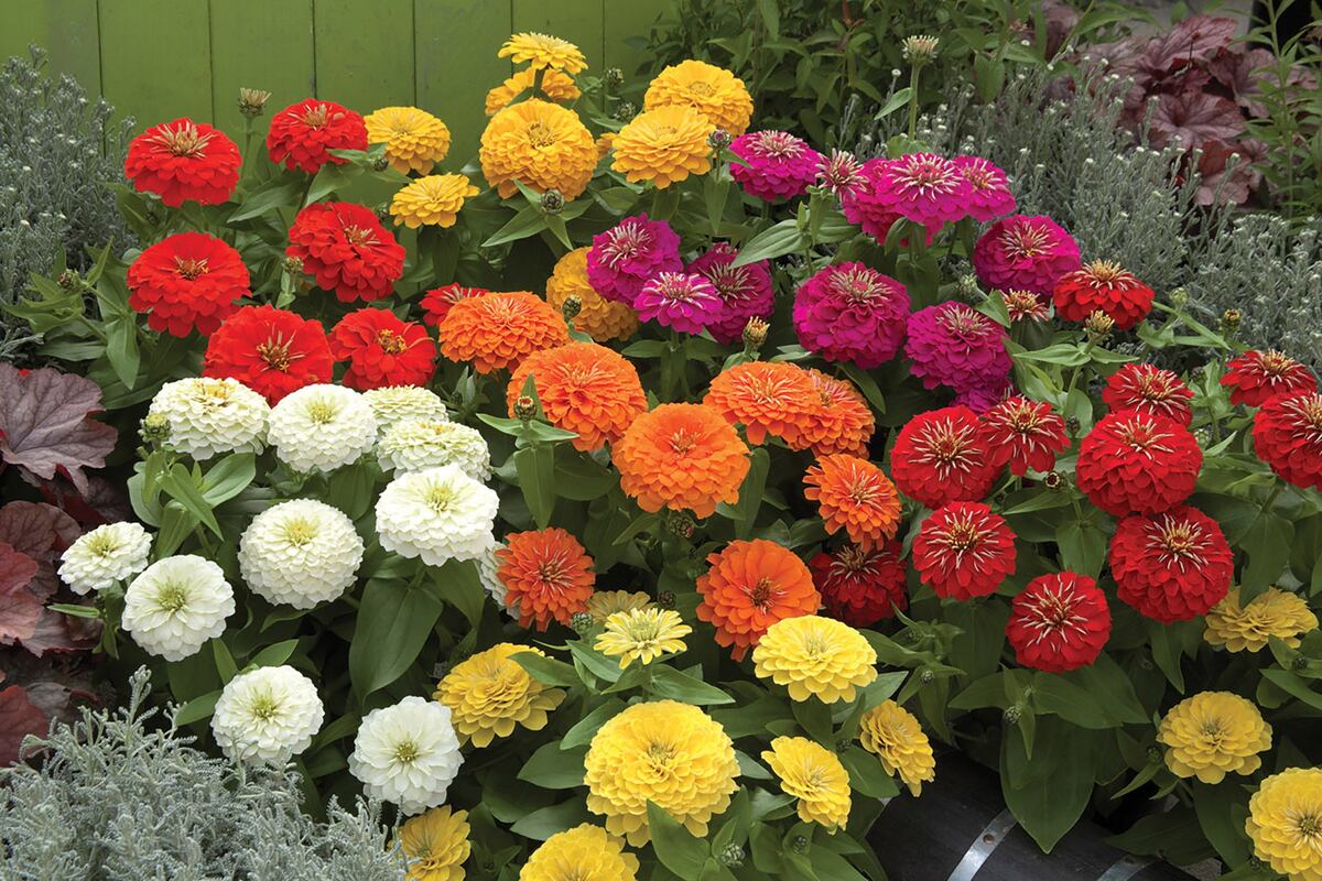 1. Цинния изящная (Zinnia elegans) – высокие (до 90 см) растения с крупными цветами. Популярные сорта: