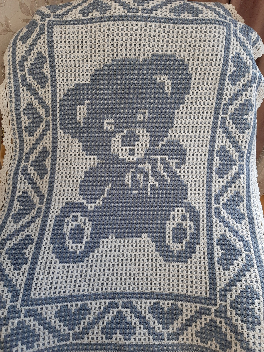 Добрый день! Приветствую Вас на моем канале «Уютное рукоделие». Сегодня хочу предложить вам описание на рапорт каймы «Сердечки» (с моего детского пледа с мишкой).