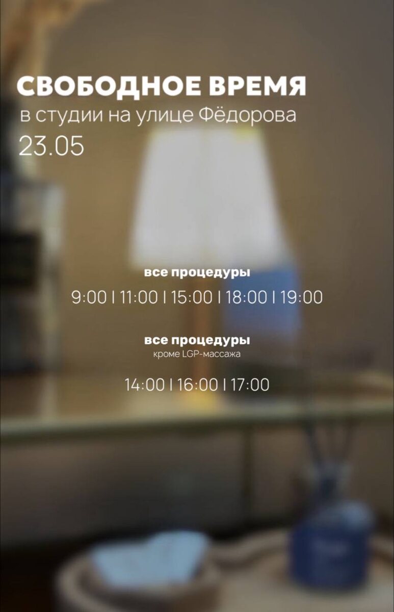 СВОБОДНОЕ ВРЕМЯ НА ФЁДОРОВА 23.05 • ONLINE запись • WHATSAPP Ждём вас к нам на процедуры 🤍