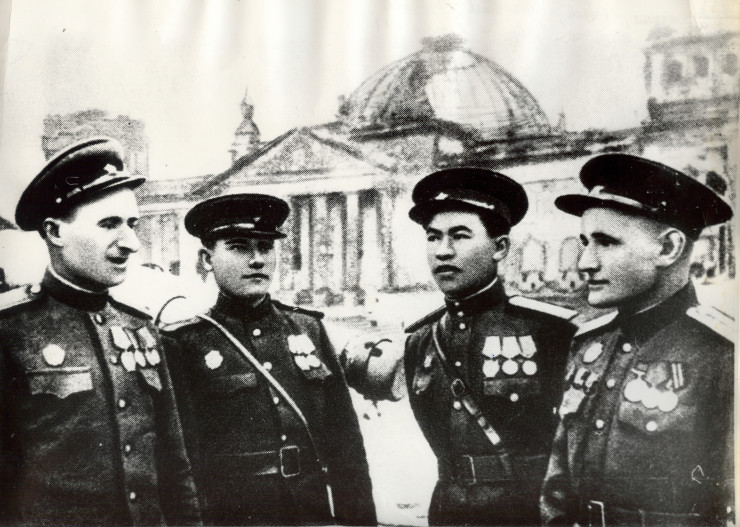 Более того, 17 мая 1945 года в газете 3-й Ударной армии 1-го Белорусского фронта «Фронтовик» под заголовком «Герой штурма Берлина» была помещена фотография Рахимжана Кошкарбаева (!), сделанная фотокором старшим лейтенантом В. Гребневым.