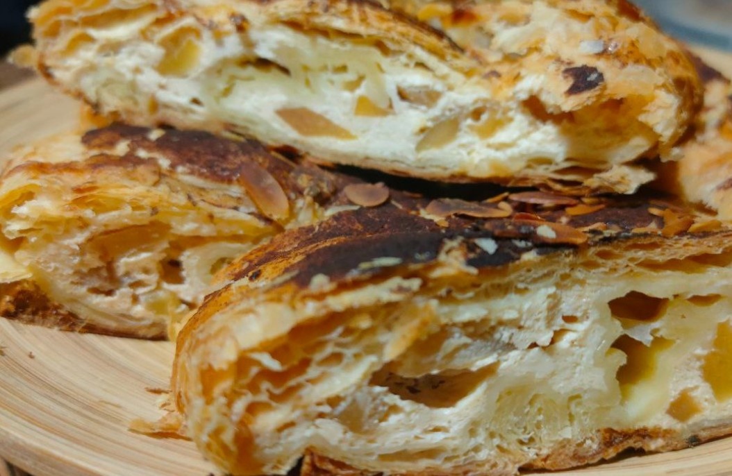11.На него выложить творожно-яблочную смесь и распределить по всей поверхности ровным слоем.